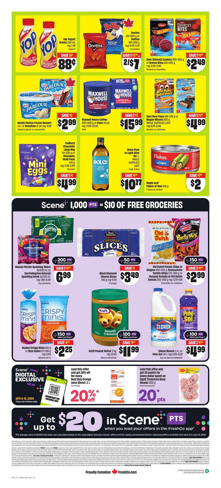 Browse the Weekly Freshco Flyer Prices (Ontario area), valid April 9 – April 15, 2026. Save with Freshco Sale Flyer for this week, and weekly deals & offers for stores located in Mississauga, Brampton, Hamilton, Scarborough, Markham, Oshawa, North York, Kitchener, Guelph, Oakville, Burlington, London, Windsor, Peterborough, Barrie, Kingston or St Catharines.