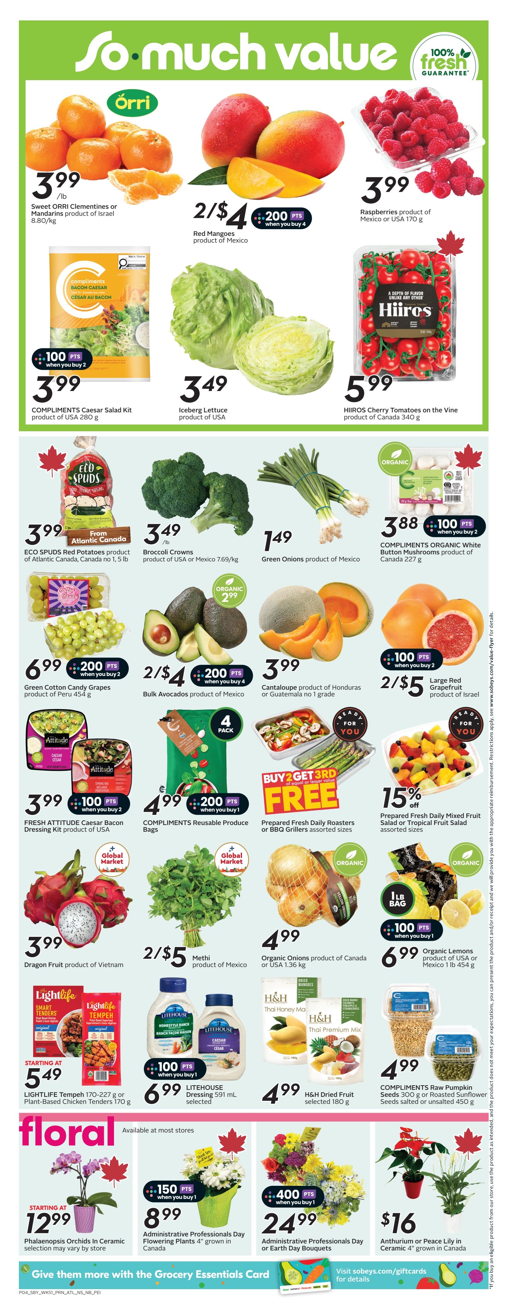 View Sobeys (Atlantic) Flyer Prices, valid April 16 – April 22, 2026. Save with Sobeys Sale for this week and weekly flyer deals & grocery promotions. The grocer is a popular supermarket that stocks fresh produce every day and carries an excellent selection of various cheeses in addition to deli foods and pre-packaged bakery goods.